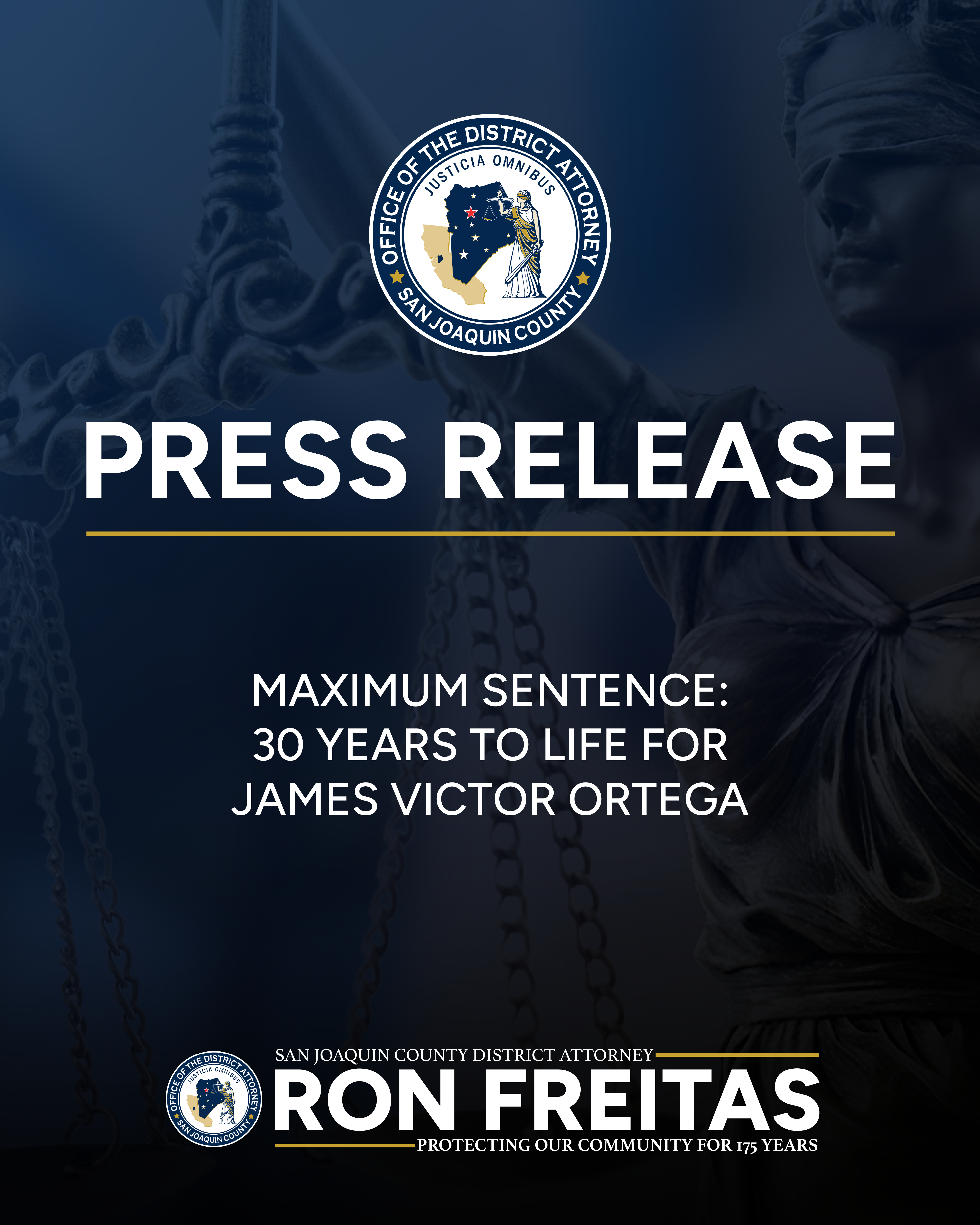 San Joaquin County District Attorney Ron Freitas announced that James Victor Ortega was sentenced to 30 years to life in state prison, bringing a definitive end to a case that began with a brutal crime spree on September 24, 2021.