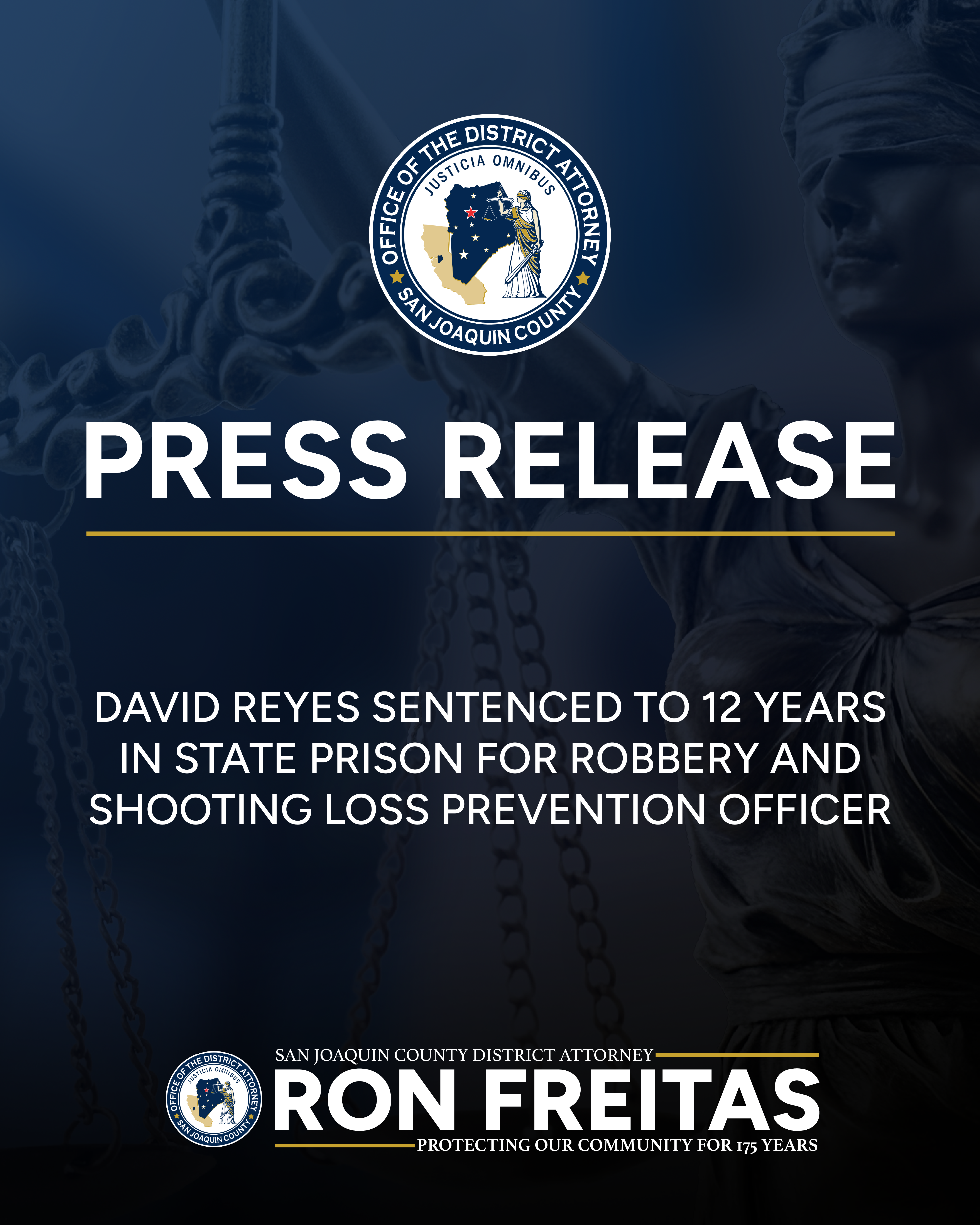 David Reyes Sentenced to 12 Years in State Prison for Robbery and Shooting Loss Prevention Officer