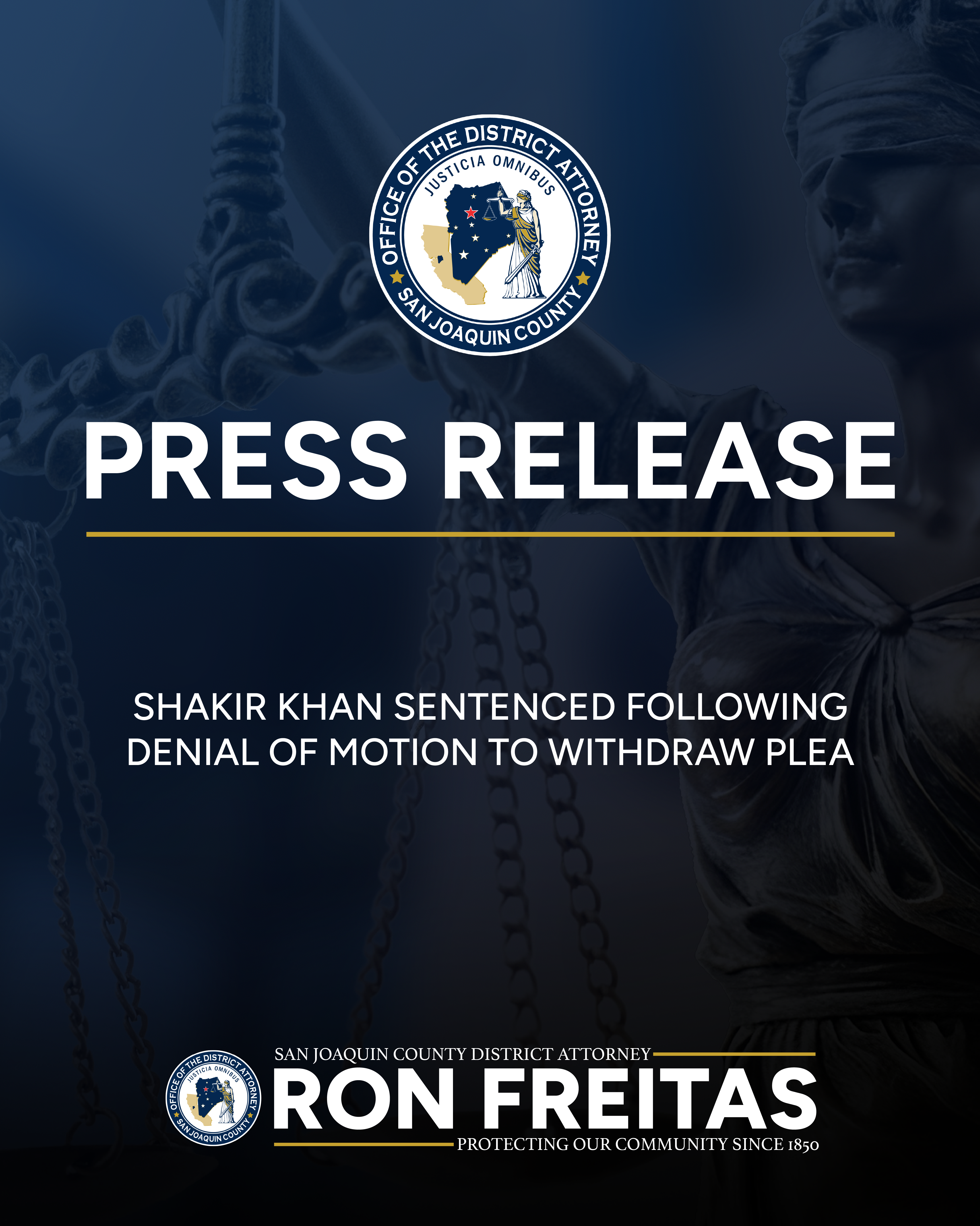 On March 2, 2026, the Honorable Judge Mallett sentenced Shakir Khan, who pled no contest to criminal counts that include election fraud and money laundering, underscoring the San Joaquin County District Attorney’s firm commitment to safeguarding election integrity and holding accountable those who attempt to undermine our democratic process.